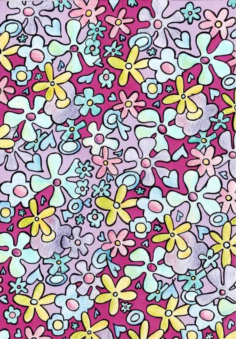 Coloured pencil and marker pen.